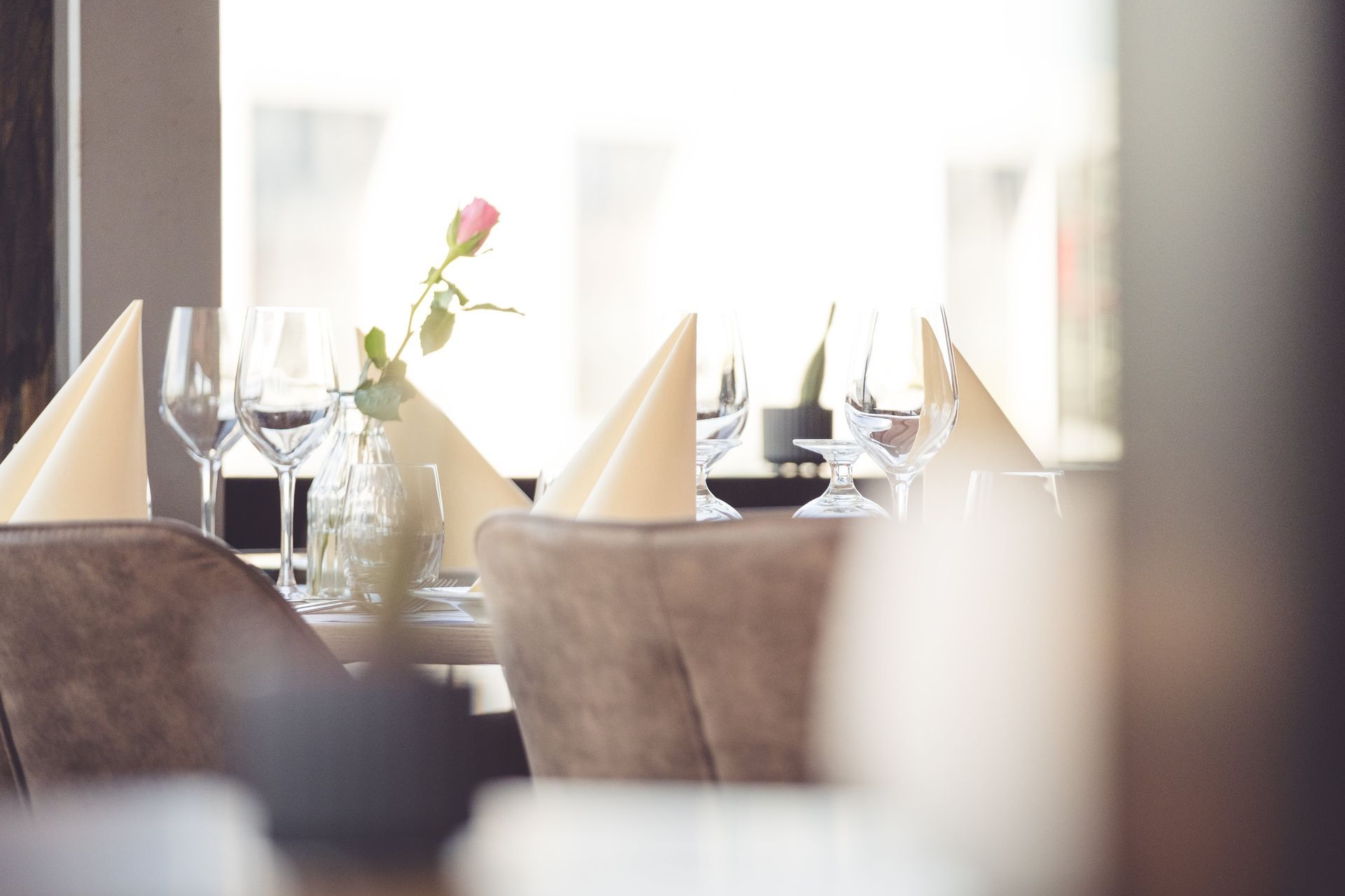 Når menuen og drikkevarerne er på plads, sørger vi for, at omgivelserne afspejler den rette stemning. I vores lyse restaurant har vi plads til op mod 80 personer, men er jeres selskab mindre, står vores hyggelige og mere intime deli-område også til rådighed. Vi sørger for en passende opdækning og diskret pyntning, så rammerne føles både varme og højtidelige. I kan læse mere om vores muligheder for bordplaner og blomster i vores selskabsguide.
